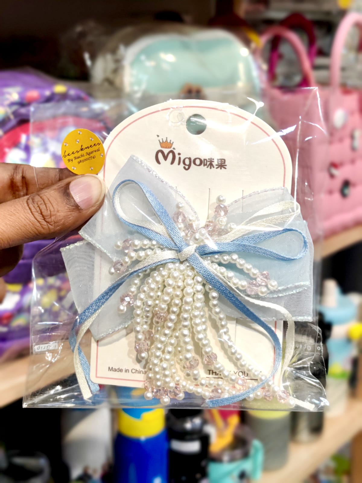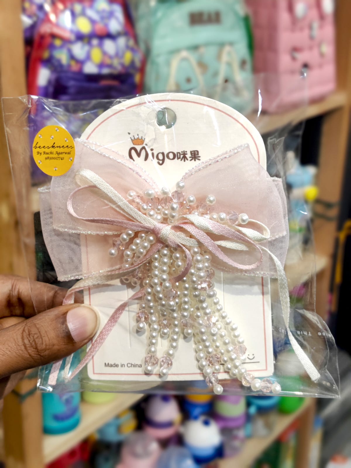 Pearl Crystal Bow Hair Bow Clips