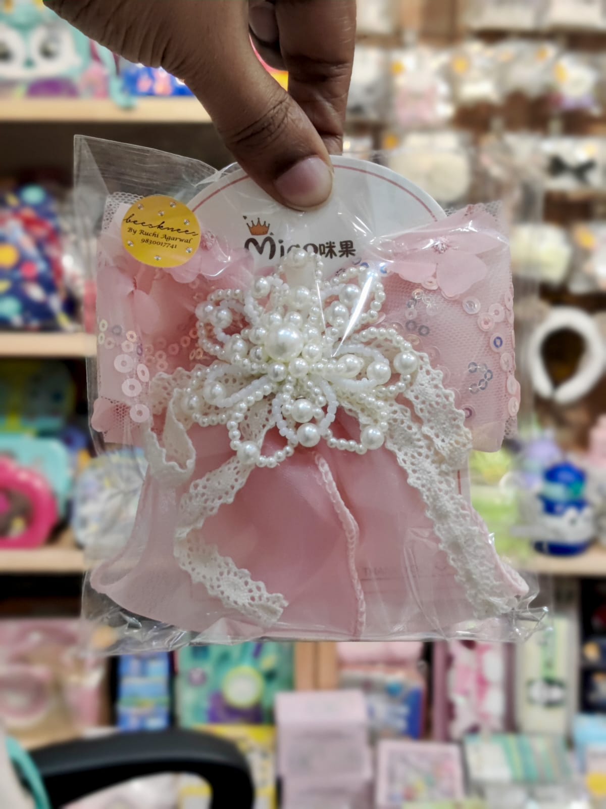 Pearl Crystal Hair Bow Clip